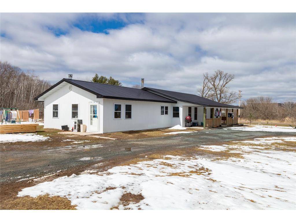 Horse people! Horse people! Horse people! This is the one. The house is beautiful, steel sided one level rambler set on 27 acres with the Trade River flowing through the land year-round. The land is the perfect balance of open ground and wooded space and some great pasture. The out buildings are huge! The West barn contains an indoor riding area, a 20x36 office space and several horse stalls. The west building 60'x192'. The east building is 96'x48 with the north 32 feet slabbed and plumbed for in floor heat. The east building also has a lean-to that is 16x96. The west side of the building has 8ft cantilevered rafters. The house, east building and additions are all built since 2021. The septic tank is 300 gallons and new.